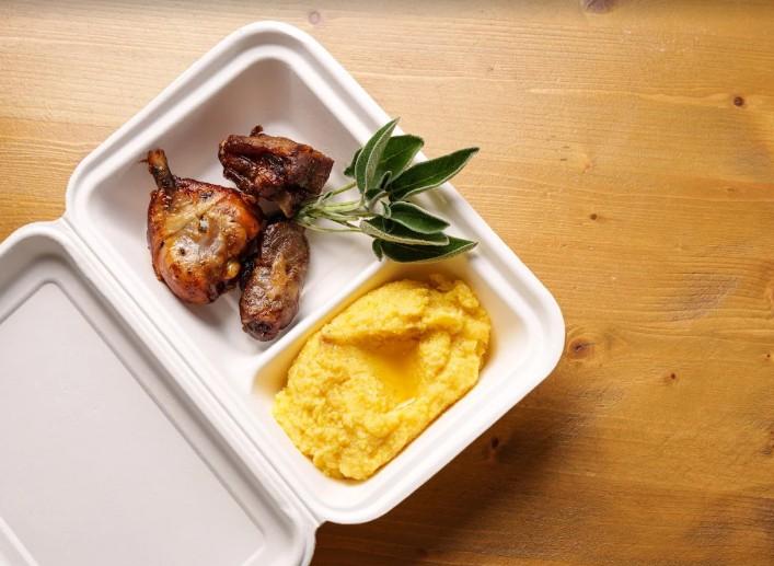 Spit roast with polenta and potatoes, the traditional festive dish of Brescia.